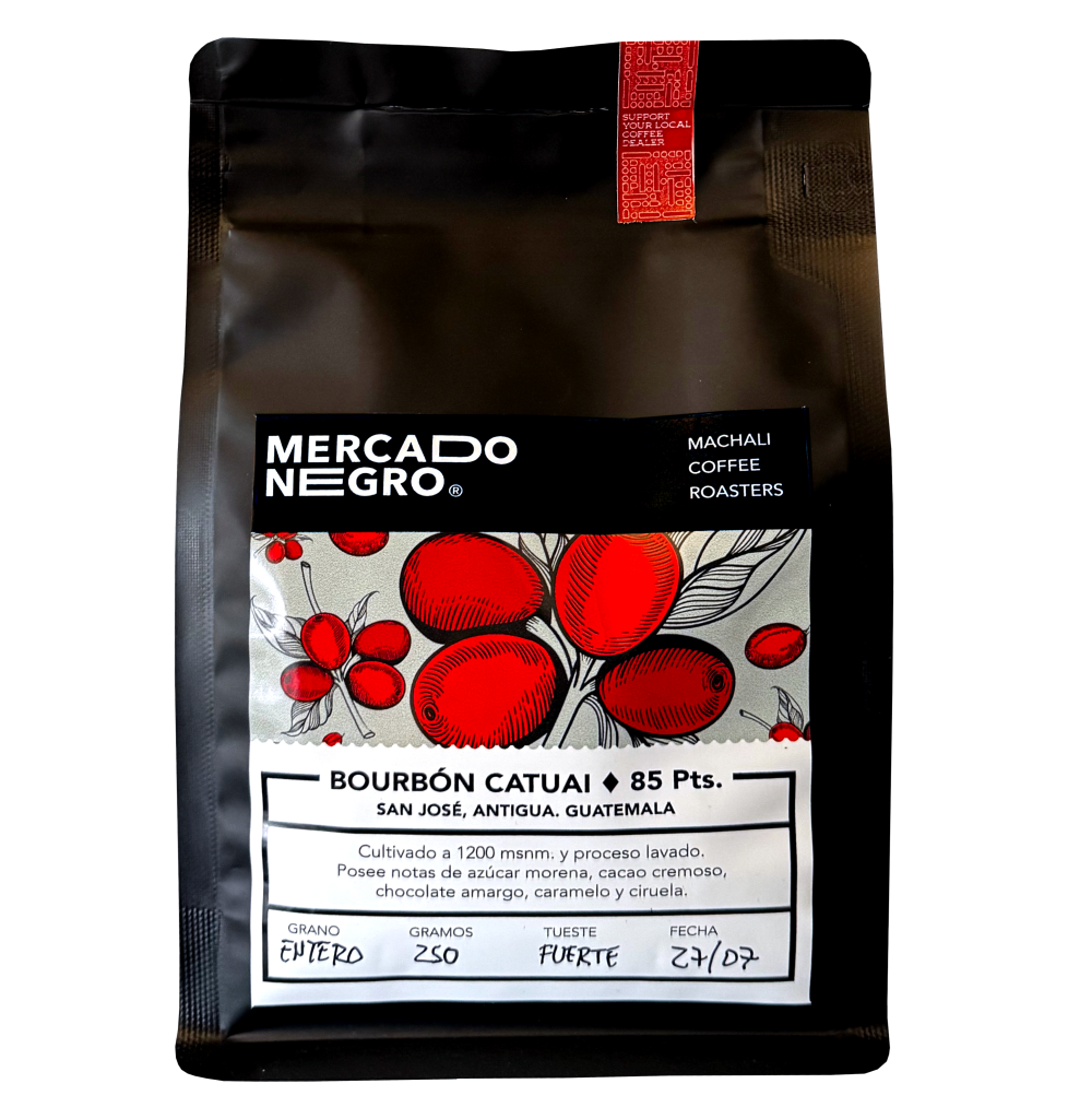 Cultivado a los 1200 msnm. y proceso lavado, en San José, Antigua; Guatemala. Posee notas de azúcar morena, cacao cremoso, chocolate amargo, caramelo, y ciruela. Aroma a chocolate, almendras tostadas y caramelo. Cuerpo medio alto. Post gusto almendras tostadas y chocolate.